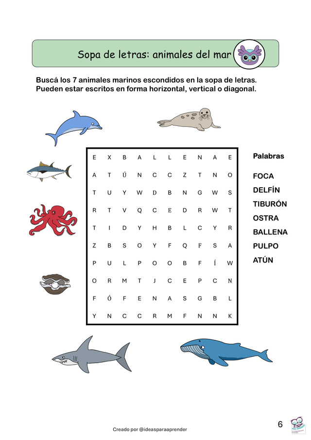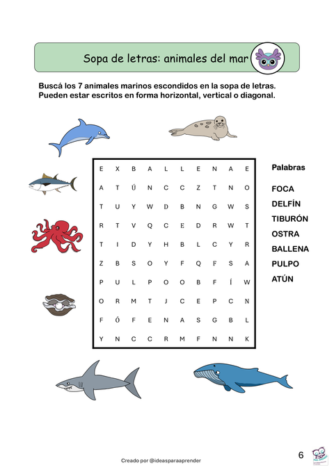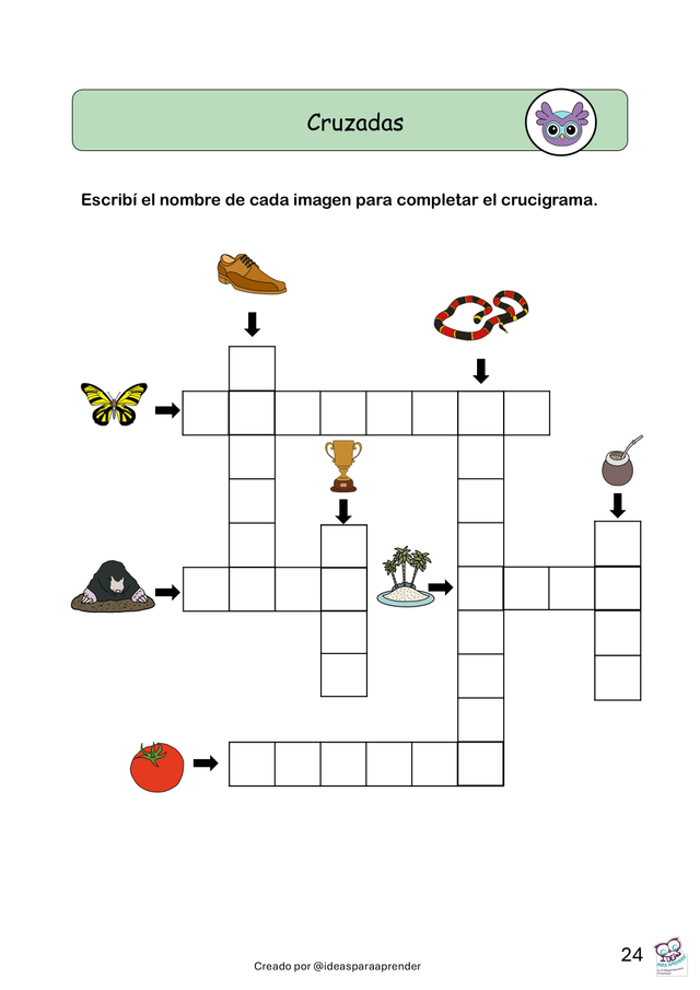 Cruzadas, sopas de letras y mensajes para descifrar Actividades que estimulan la lectoescritura, el vocabulario y la atención sostenida.