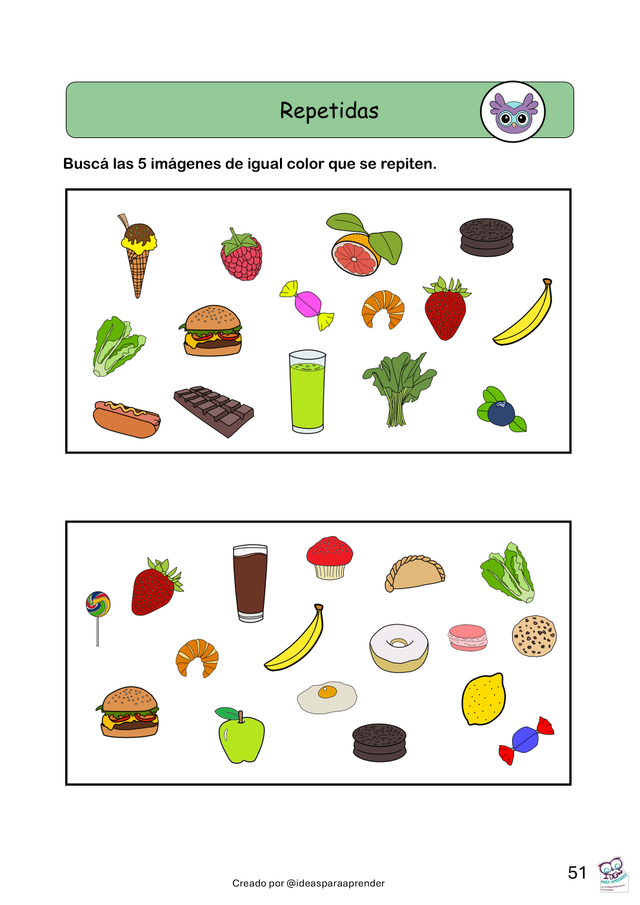 Laberintos, repetidas y diferencias Ideales para trabajar atención selectiva, planificación y control inhibitorio.