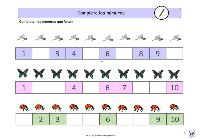 Ordenar tarjetas, completar dibujos siguiendo el orden numérico y actividades de continuidad visual.(8 actividades)