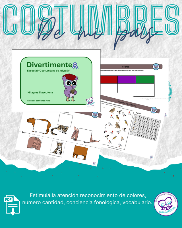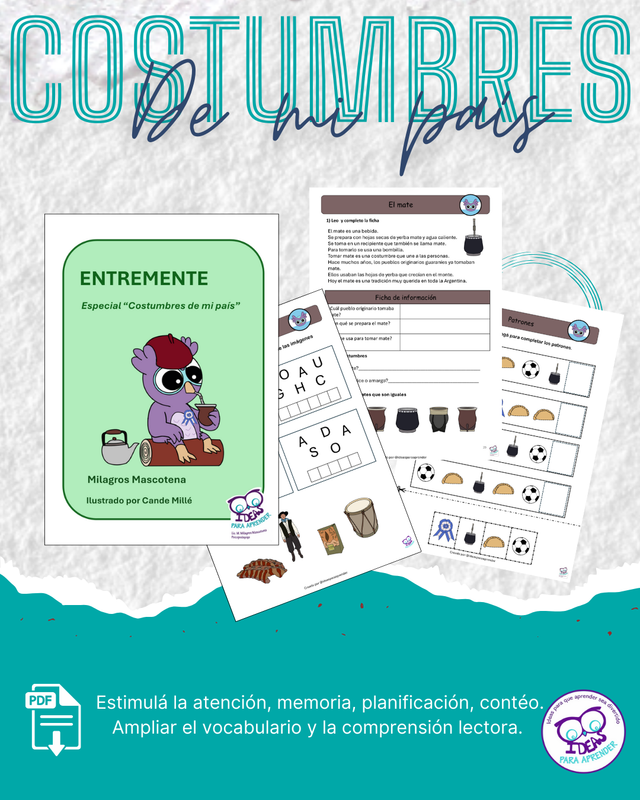 Material con actividades sobre costumbres argentinas: atención, lenguaje, lectura, lógica, memoria y creatividad. Incluye recortables, lecturas, juegos y clasificaciones. Ideal para acompañar aprendizajes transmitiendo costumbres y valores de Argentina.